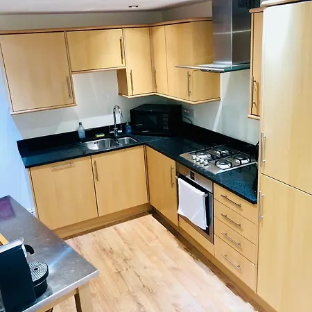 Contemporary Large Apartment In An Ideal Location 巴斯设有厨房和配沙发,办公桌 和咖啡机/煮茶机的客房. 布里斯托机场离这个公寓仅30公里.